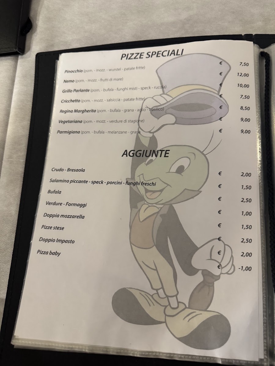 The menu at Il Grillo feels like a carefully curated snapshot of Italian comfort and tradition, balancing seafood, meat, and classic pasta dishes with confidence and variety. Pizza lovers can enjoy familiar favorites like Pozza and Regina Margherita, which set a reliable foundation with simple, well-loved flavors. Seafood clearly plays a central role, highlighted by dishes such as Spaghetti Allo Scoglio, Spaghetti All’astice, and Spaghetti Alle Vongole, each offering a rich expression of the sea, while Frittura Mista Di Pesce and Crostacei Gratinati Al Forno add texture and depth through crisp and oven-baked preparations. Starters like Antipasto Al Vapore Di Pesce introduce freshness and lightness, preparing the palate without overpowering it. Pasta dishes are especially diverse, ranging from earthy options like Tagliatelle Ai Funghi Porcini and Tagliatelle Al Ragù to more distinctive regional flavors found in Bigoli All’anatra and Gnocchi Con Zucchine E Marzancolle, which combine comforting textures with well-balanced sauces. Meat dishes such as Lepre Alla Cacciatore Con Polenta Arrosto and Filetto Con Funghi Porcini showcase heartier, rustic cooking, while grilled options like Grigliata Mista and Tonno Alla Brace E Verdure Grigliate provide a satisfying, smoky alternative. Even simpler offerings like Würstel E Patatine Fritte, Patate Fritte Con Buccia Fatte A Mano, and Patate Rustiche feel intentionally placed, rounding out the menu with familiar, shareable sides. Traditional cold cuts such as Salame Casalingo add another layer of authenticity, reinforcing the sense that this menu is designed to please a wide range of tastes while staying true to classic Italian culinary roots.